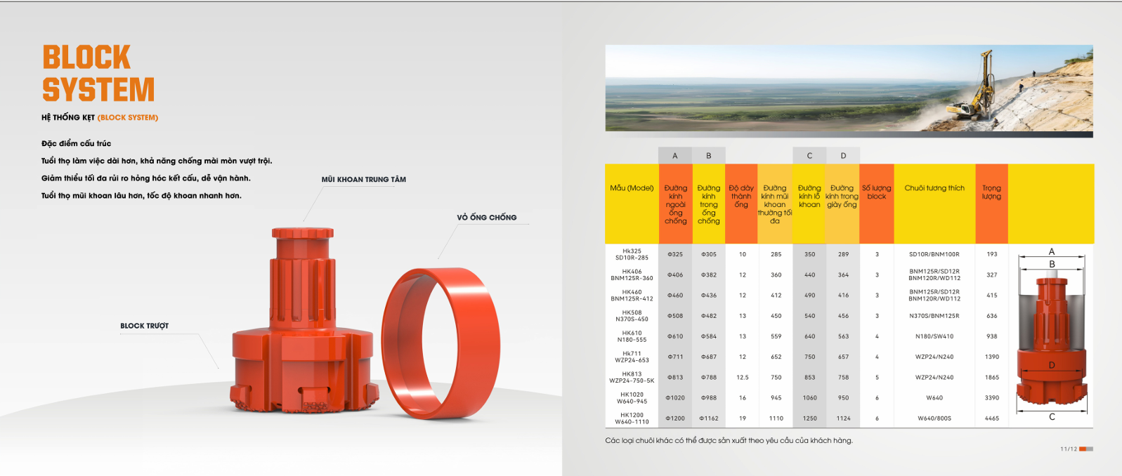 Đường kính mũi khoan: Nhiều kích thước phù hợp các loại ống casing tiêu chuẩn.