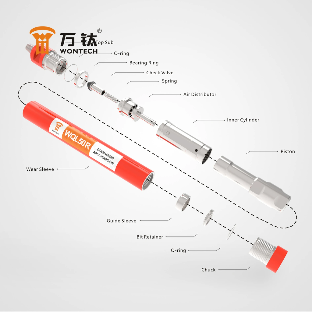 Trong lĩnh vực khoan giếng nước địa nhiệt và các ứng dụng khoan đá chuyên nghiệp, búa khoan DTH (Down-The-Hole) đóng vai trò then chốt. Wontech DHD350 QL50 5" Inch là một sản phẩm nổi bật, được thiết kế để mang lại hiệu suất vượt trội, độ bền cao và khả năng hoạt động ổn định trong các điều kiện khắc nghiệt nhất.