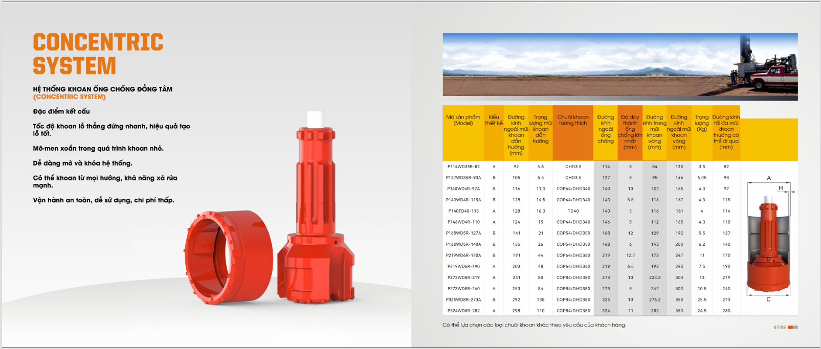 Đường kính mũi khoan: Nhiều kích cỡ, phù hợp các loại ống chống phổ thông.