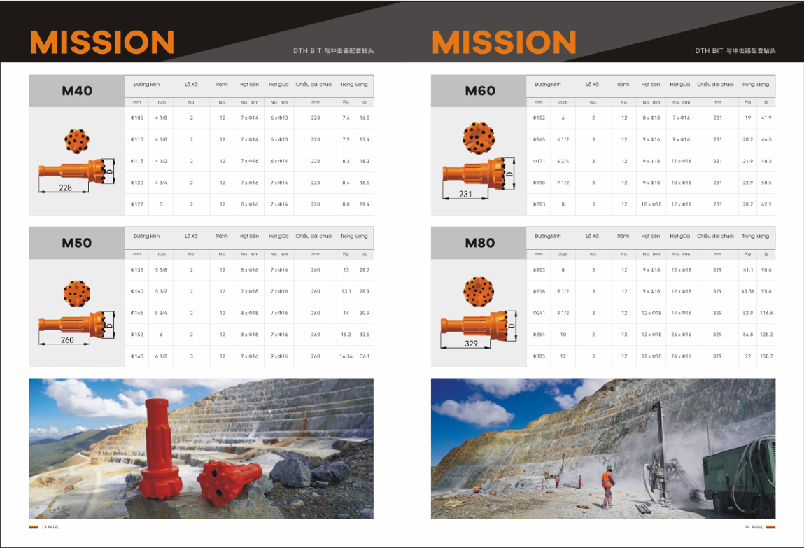 - Khai thác mỏ: Lý tưởng cho việc khoan các lỗ nổ và lỗ thăm dò trong các hoạt động khai thác mỏ.