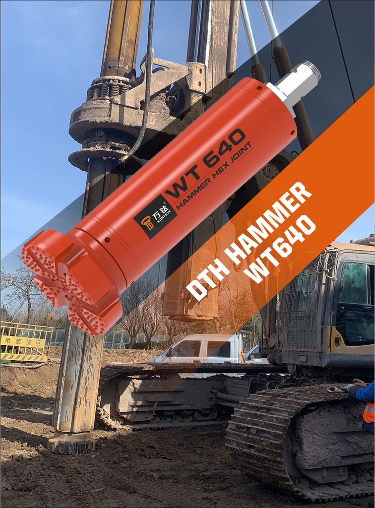 Búa WT640 DTH Hammer là dòng thiết bị khoan đá chất lượng cao, thiết kế đặc biệt để chịu được áp suất khí lớn và hoạt động ổn định trong các công trình khoan từ kích thước vừa đến lớn. Sản phẩm phù hợp với nhiều ứng dụng như khoan giếng, khoan móng, khai thác đá, khoan địa chất.